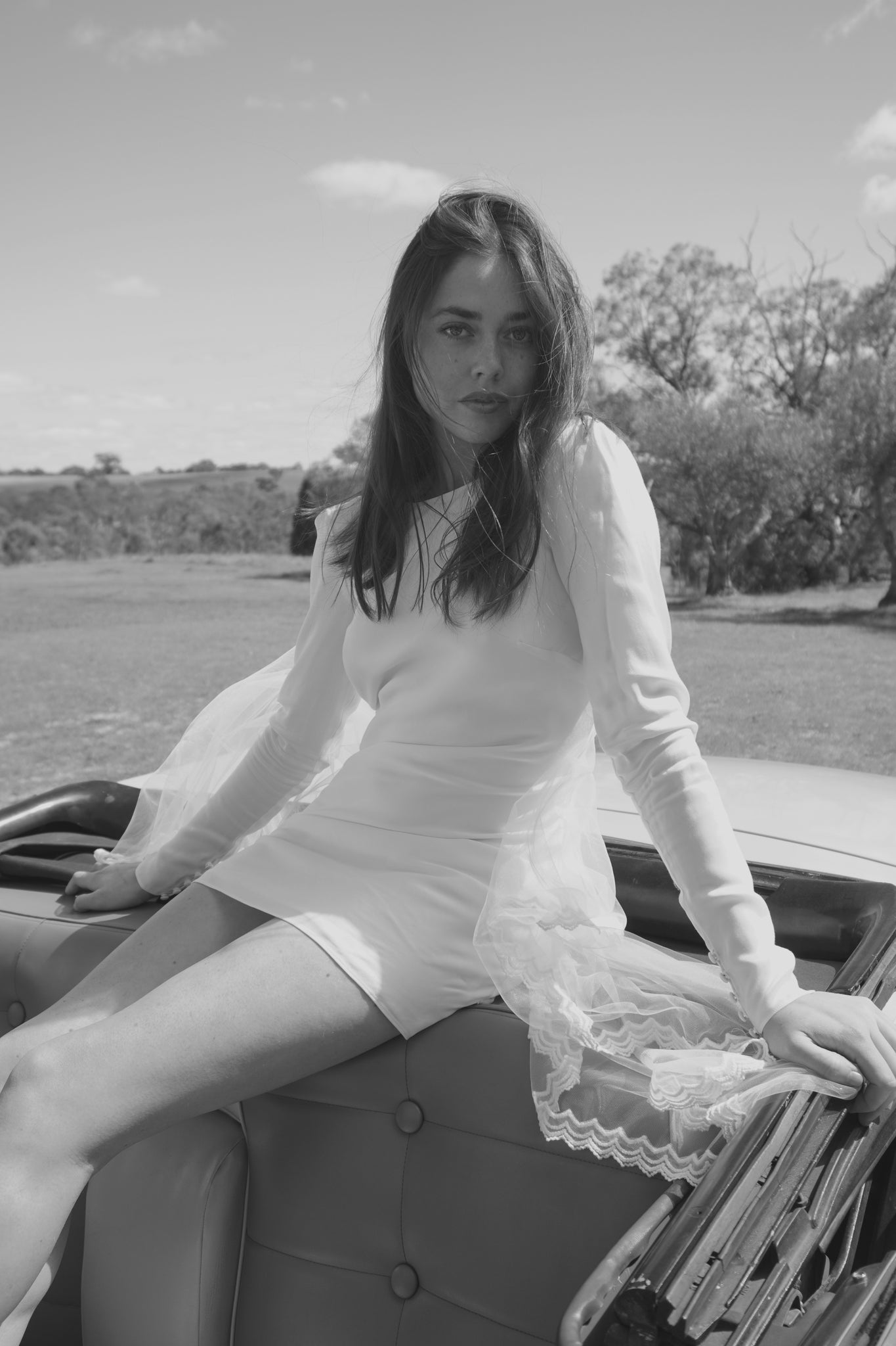 Gabrielle is crafted from a sandwashed cupro blend fabrication which has a velvety satin handfeel with a silk like drape. Gabrielle mini wedding dress is fully lined in a viscose blend sateen.